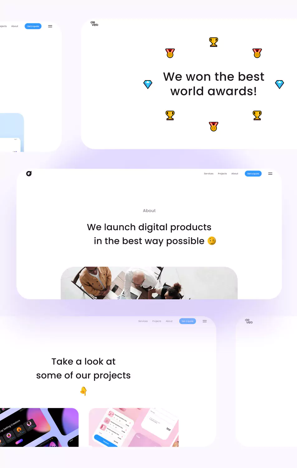 Deveb is a creative agency with solid design and development expertise. We shape brands, design and build websites. This project shows our agency website, featuring a clean, modern, minimal design, engaging user interaction, and stylish/trendy animations.... Read More